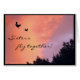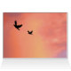 Deze mooie zustervriendschapskaart vangt twee duven op die in de zonsondergang vliegen. De hemel lijkt in brand te staan met wolken in regenboogkleuren van rood, oranje, geel, blauw, magenta en paars. Alleen de topjes van de bomen zijn te zien in zwart silhouet. De binnenkant herhaalt de prachtige zonsondergang met nog eens twee duiven. De tekst luidt: Zussen vliegen samen. Het kan gemakkelijk worden aangepast of worden verwijderd.