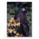 Giften gemaakt van een foto van een zwart beer die speelt met een tak van paarse bladeren in briljante valkleuren.