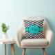 Show op een leuke manier van je stijl met deze zwarte en blauwgroen blauwe gepersonaliseerde kussen van chevron.