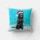 De zwarte Duitse Shepherd Dog zit in sneeuw met de kleine kerstkerstkerstkerstman Pillow. Een perfect cadeauidee voor iemand die van dit hondenras houdt.