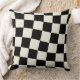 Dit kussen heeft een trendy kromgetrokken dambord raster van zwart en gebroken wit om je bank of bed een leuke en retro vibe te geven.