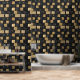 Zwart en goud bakstenen patroon behang