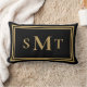 Creëer uw eigen gepersonaliseerde monogram kussen. Het initiaal bestaat uit drie letters in een elegante gouden typografie op een zwarte achtergrond.