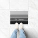 Deze trendy deurmat heeft vier strepen in verschillende ombre gradiënten van zwart, houtskool en grijs, en jouw naam of monogram in script typografie voor een moderne look.