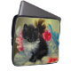 Laptophoes met een mooi zwart-wit katje! Deze fluffy tuxedo kat vormt een rode bloem op een blauwe deken. Een geweldig cadeau voor kattenliefhebbers en Victoriaans kunstliefhebbers!