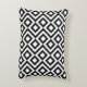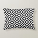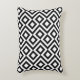 Deze stijlvolle zwarte en witte geometrische patroonaccentkussen zijn voorzien van een origineel siervormig ontwerp. Witte kwade mazen draaien rond zwarte diamanten die witte diamanten bevatten. De zwarte zigzags verstrekken subtiele scheiding tussen de het winden wegen.