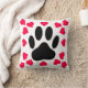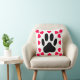 Origineel ontwerp van een hondenpootdruk met hartvormen. Decoratieve kussen.