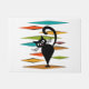 Kleurrijke abstracte afbeelding met middeleeuwse stijl met zwarte kat en kleurrijke rokerbussen op witte achtergrond
