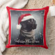 Een knap zwart lab ziet er stijlvol uit in zijn Santa pet en een grijze sjaal.