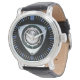 zwart lederen band roterende motor horloge