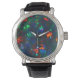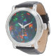 Heerlijk Classic Designer Horloge met een Zwart Opal Gezicht vol Rood en Groen Vuur.