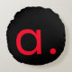 Zwart Rood Monogram Initiaal Letter Modern Plain Rond Kussen