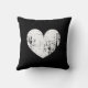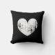 zwart-wit hart werpt kussen op het kussen. Robuust ontwerp van het liefdespictogram met aangepaste effen kleuren achtergrond. Kassyland kookthuis voor sofa, bank of bed. Cute romantic decoration accessoires for trendy house interior, shop, spa salon, bruiloft, verjaardagsfeest, etc. Distress grungy faded look symbol.