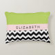 Zwart-wit Zigzag, Chevron, Groen, Jouw naam Accent Kussen