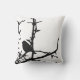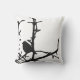 Dit eigentijdse buitenkussen toont een zwart-wit abstract silhouet Donkerogige Junco (Junco hyemalis) die op een kale tak hoog in een boom zit. Deze vogel is eigenlijk een soort kleine, grijze en witte mus.