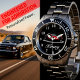 Dit coole, grappige, moderne, elegante trendy persoonlijke horloge. Het is een trendy mooie klok met witte cijfers. Met een zwarte en rode sportauto.on een png bestand. U kunt de tekst en achtergrondkleur in uw keus veranderen.