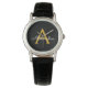 Zwart en gouden eenvoudig script monogram naam horloge. Dit is het perfecte afstudeer-, verjaardags-, trouw-, bruidsbeurtenis-, jubileum-, baby shower- of vrijgezellenfeestje cadeau voor iemand die van glamoureuze luxe en chic stijlen houdt.