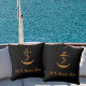 Zwarte gouden zeilboot ankernaam kust buitenkussen