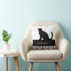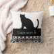 Zwarte kat gooien kussen met zwarte damast trim en aangepaste tekst veld. De achterzijde is voorzien van een grootschalige versie van hetzelfde damast patroon. Dit kussen voor kattenkunst is het perfecte cadeau voor een kattenliefhebber, oppas of zelfs als dank voor de kantoor van uw dierenarts.