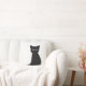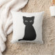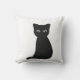 Kute zwarte kat gooit kussen. Voor kattenliefhebber.