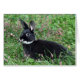Zwart otter gekleurd konijn in gras en roze onkruid