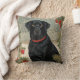 Een zwarte Labrador Retriever zit in een besneeuwd wintertafereel, omlijst door heilige takken met rode bessen. De hond heeft een rode halsband en kijkt met een rustige en waardige uitdrukking direct naar de kijker. De achtergrond is voorzien van een besneeuwd bos met kale takken en een zacht, gedempt kleurenpalet. Het afbeelding roept een gevoel van rust op en het mooie van de winter.