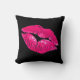 Zwarte Sierkussen Roze Lippen