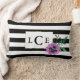 Zwarte Streep & Paarse Pansy Monogram Sierkussen Kussen