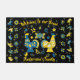 Dit portret heeft een Zweeds folk dala paard in het midden met een klassieke folk-kunstbloem in de Zweedse vlag blauw en geel. Aan de rand staan dezelfde paarden, roosters en varkens. U kunt het achtergrondpatroon op de deur kleiner of groter maken. Pas dit aan met uw eigen groet bovenaan en familienaam onderaan.
